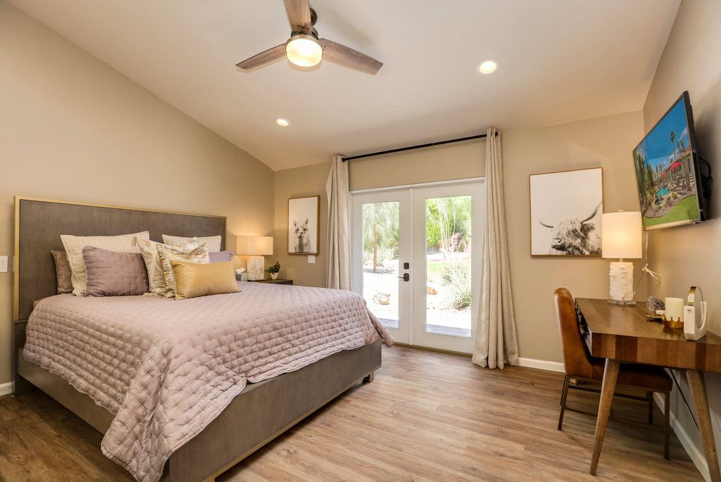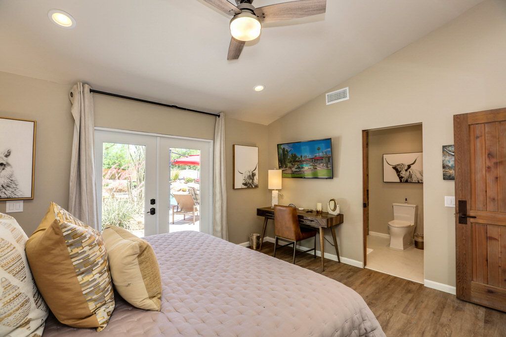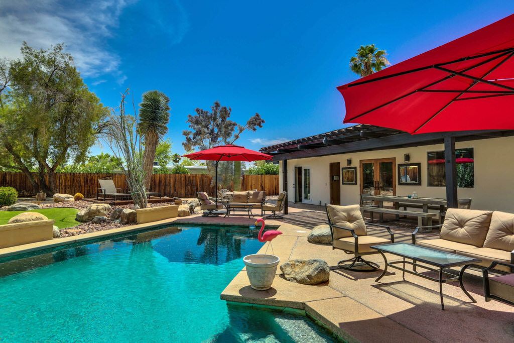 Inside, the dining area opens up to the backyard through large French doors allowing you and your guests to fully enjoy the indoor/outdoor Palm Springs lifestyle.