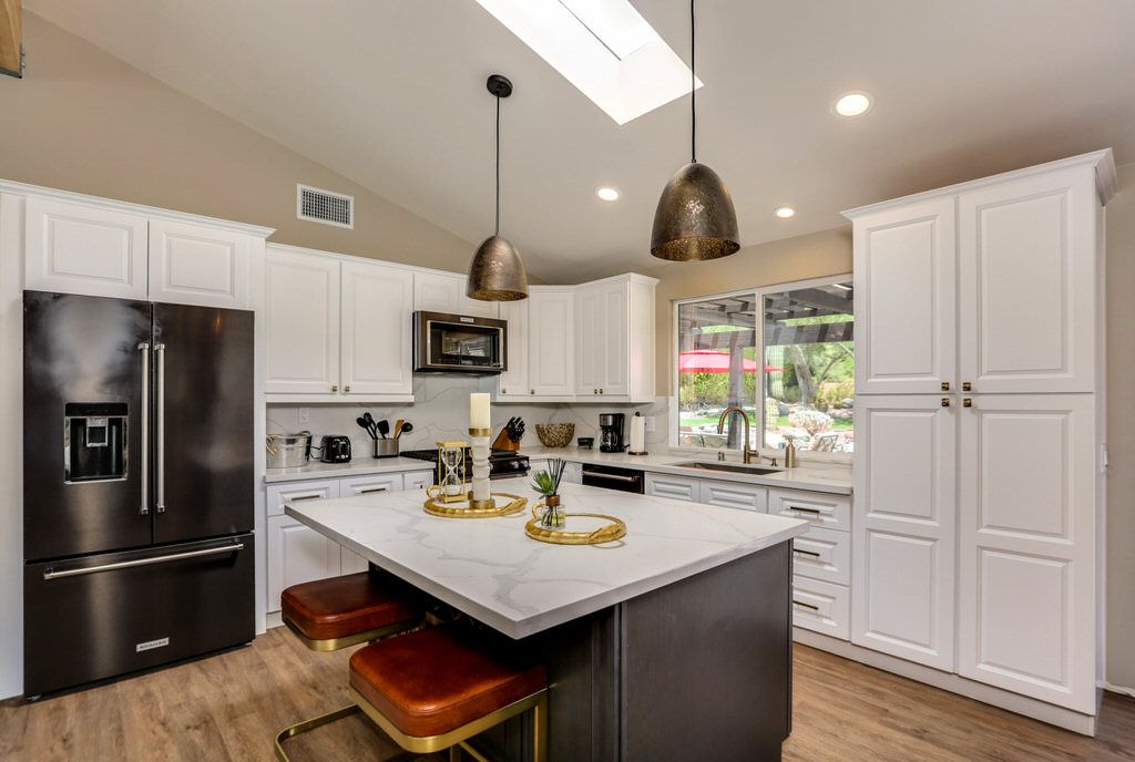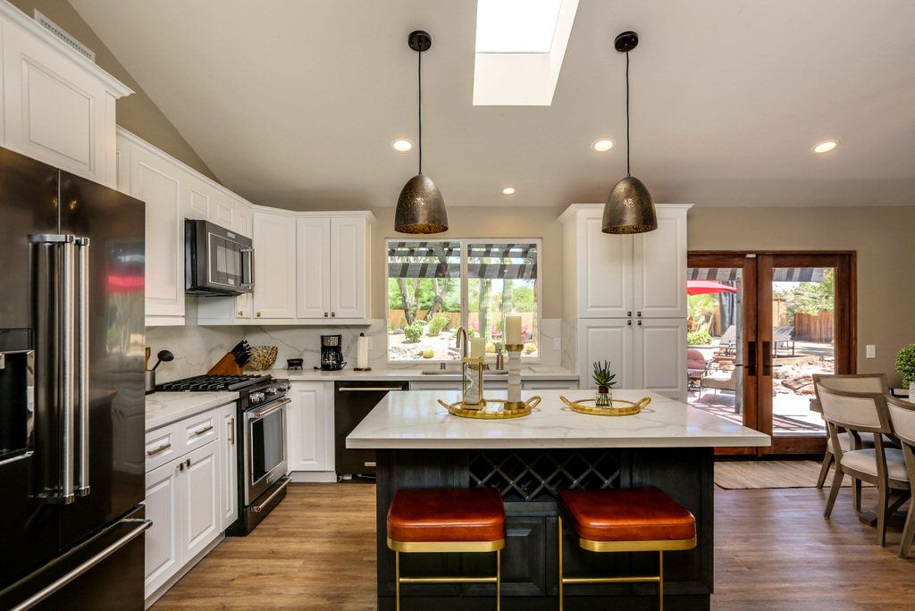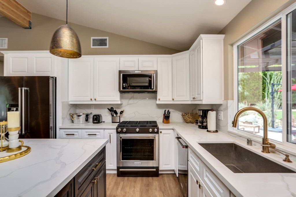 The kitchen of this Rancho Mirage vacation home has everything you would find in your own kitchen. You'll find all the tools and service ware you'll need to prepare everything from delicious meals to happy hour cocktails with family and friends.