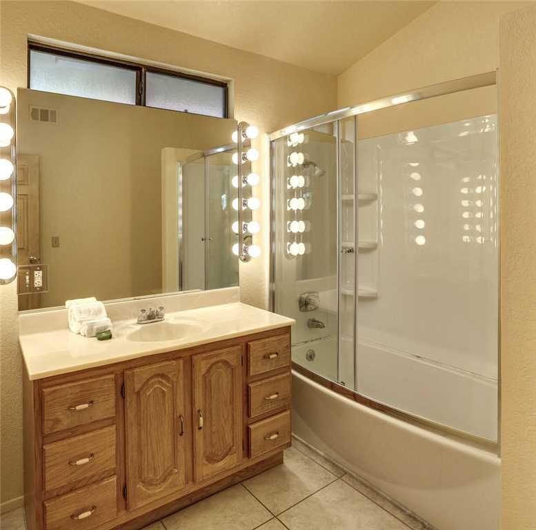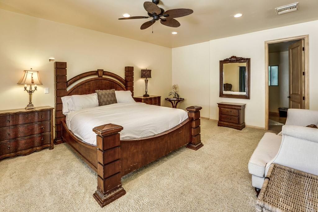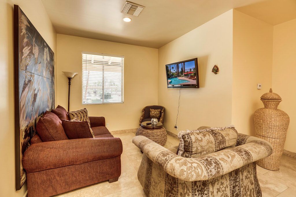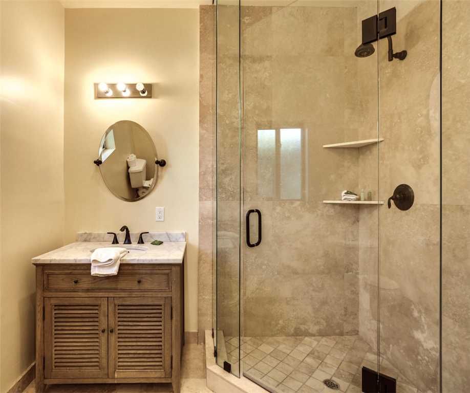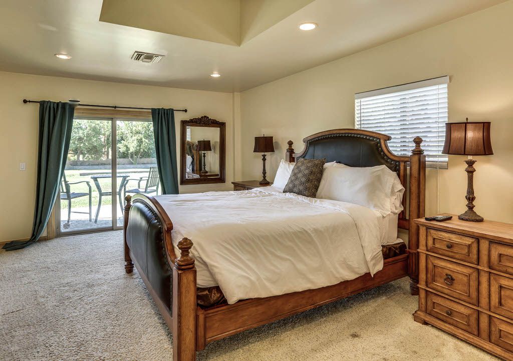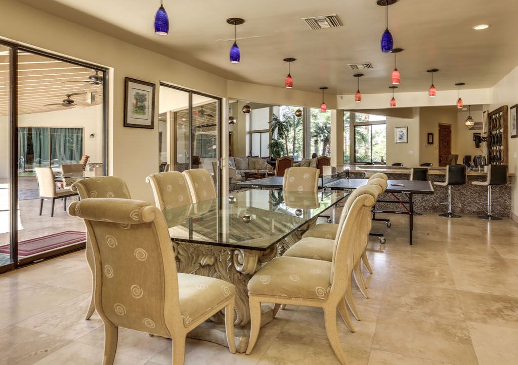 In the east wing of the home you will find a cutting edge media suite that can double as a board room depending on your needs. For convenience, the room sports its own private half bath. Off the media room there is yet another bedroom with full bath, two queen beds, plus a large screen TV. This is an ideal room for any teens who may desire a fun and somewhat separate niche of their own.
