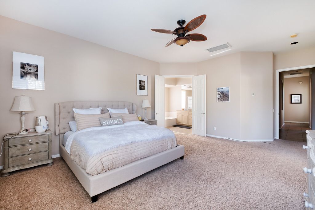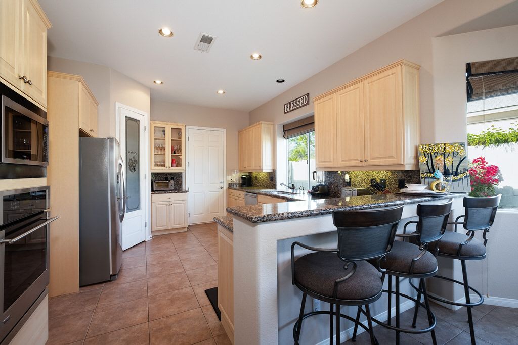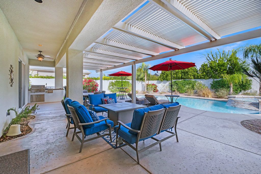 You’ll enjoy hours of relaxation with family and friends in the spacious outdoor living and dining area that includes a dining table that will seat 6, a built-in gas bbq grill and even a fire feature that will keep you warm on those cool desert nights.