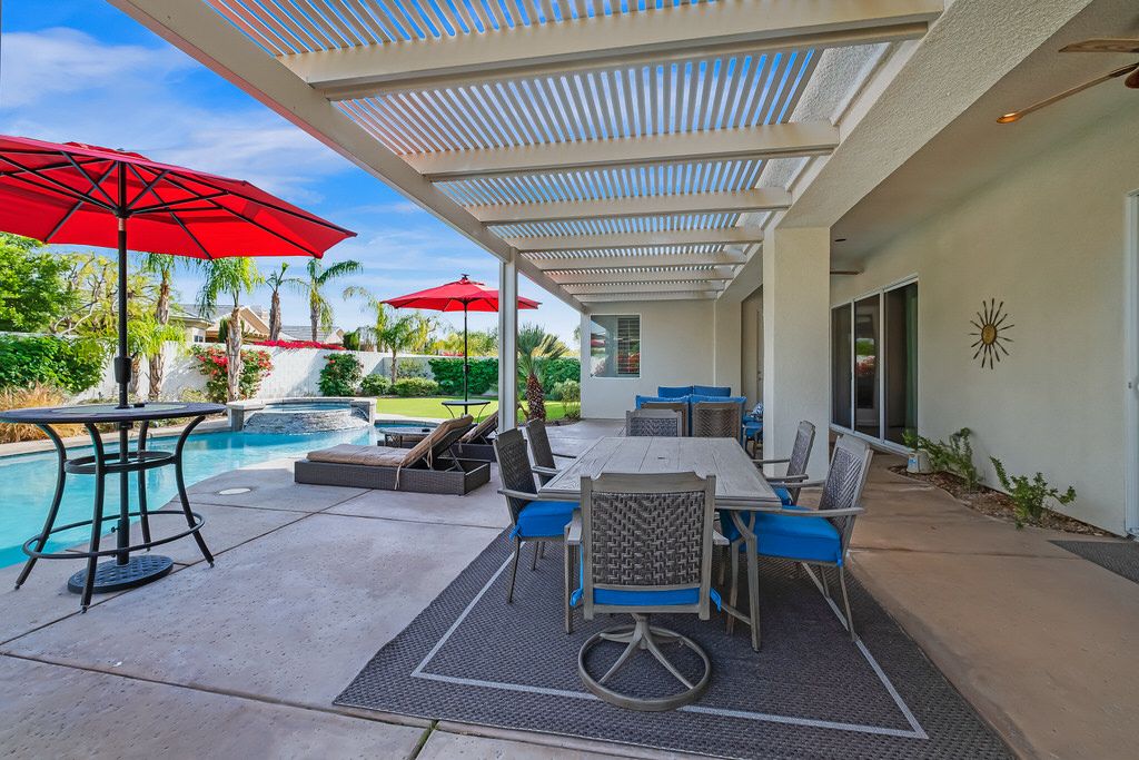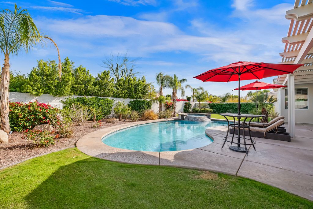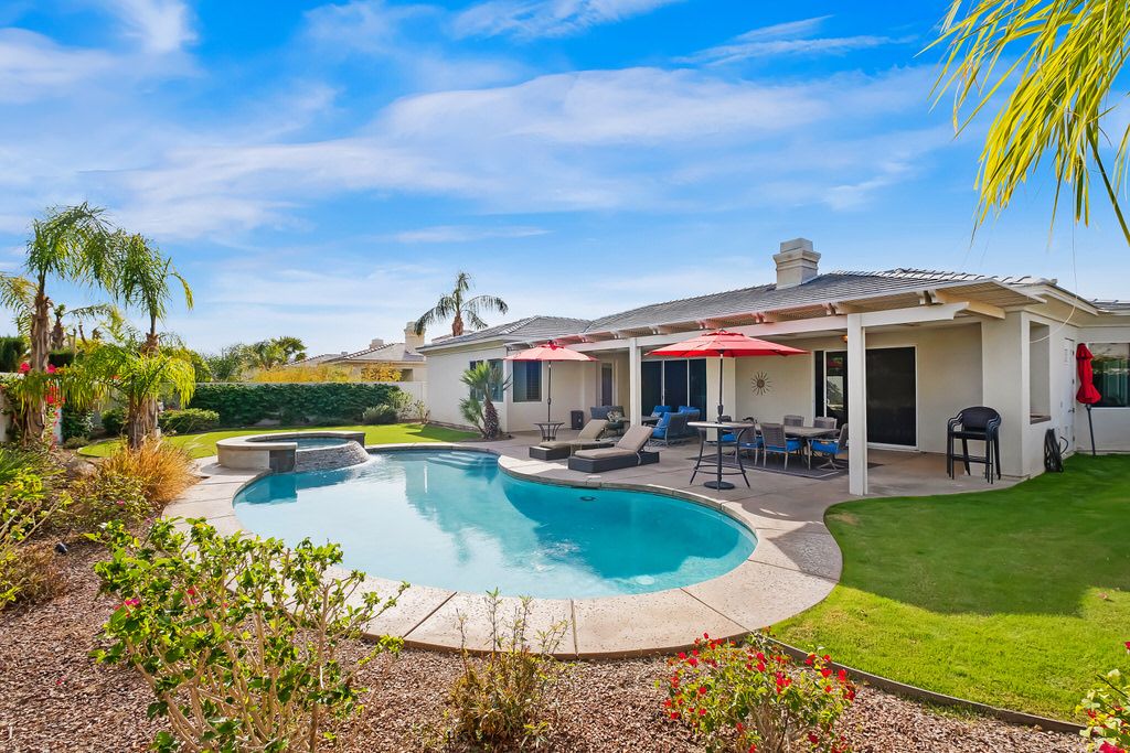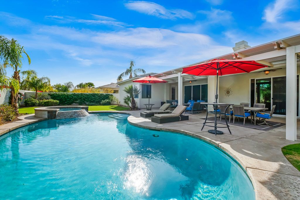 Tucked away in this exclusive neighborhood of Rancho Mirage, this fabulous vacation pool home is centrally located and convenient to The River Shopping center with the area’s best dining and bars plus a multi-plex movie theater.