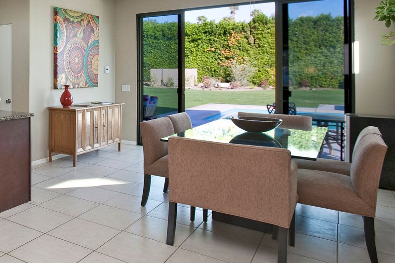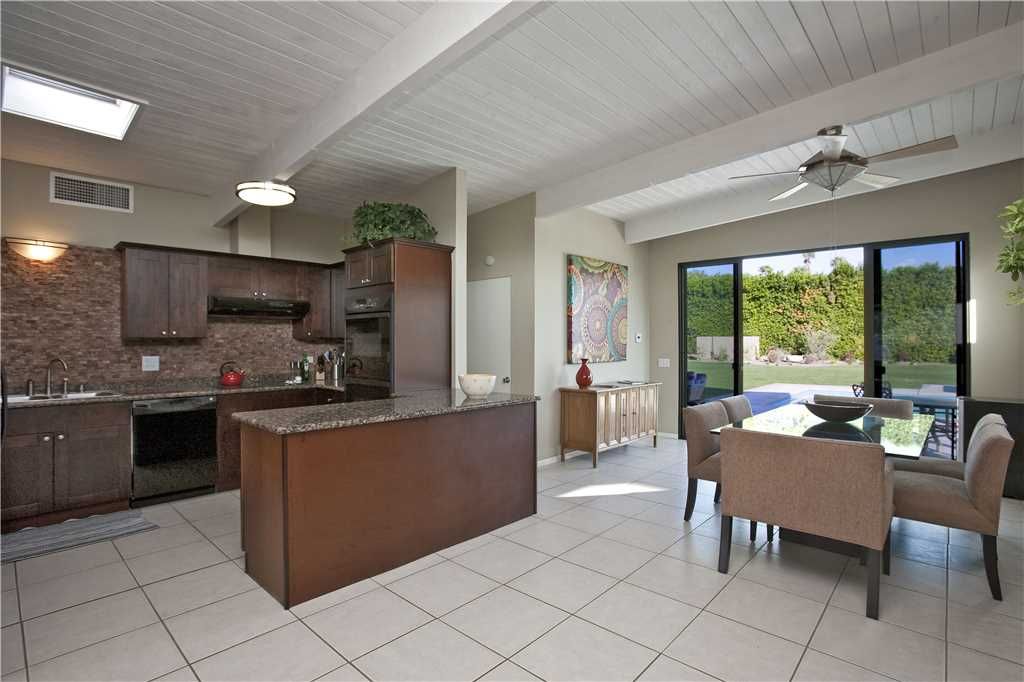 Inside, the dining room and family room open up to the backyard through large sliding glass doors allowing you and your guests to fully enjoy the indoor/outdoor Palm Springs lifestyle.