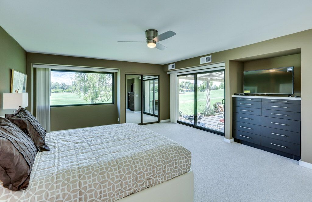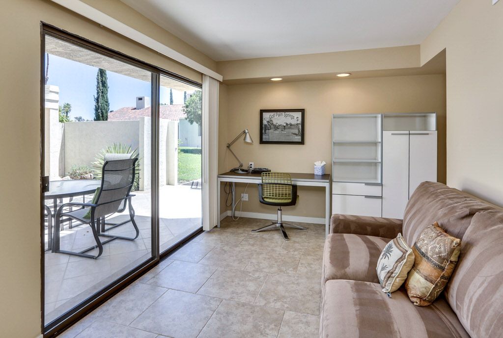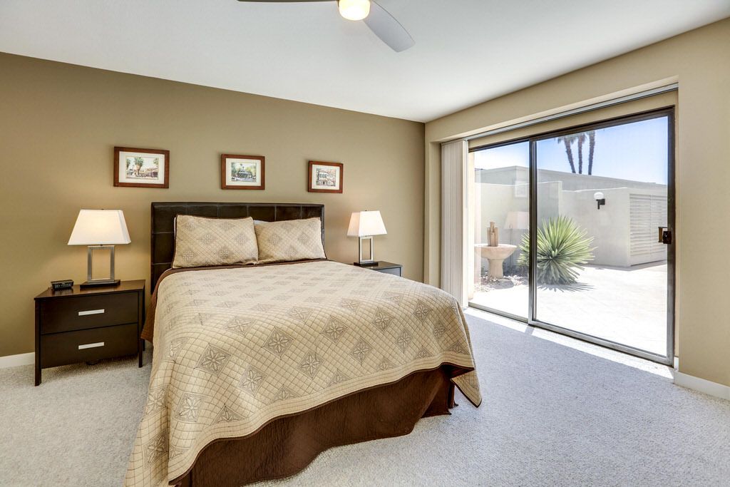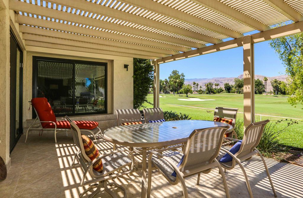 Outside, you will find gorgeous views of the mountains and golf course to be enjoyed from the back patio or adjacent swimming pool. The patio is completely private from the pool so it's close but not too close. There is a gas BBQ on the patio for those who enjoy cooking outside while watching the Palm Springs sunset.